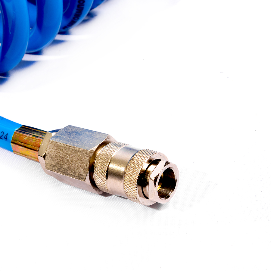 Шланг воздушный спиральный применяется для подачи воздуха от компрессора или линии сжатого воздуха к пневмоинструменту. За счет своей формы в виде спирали, шланг имеет достаточно компактный размер и не мешается под ногами.