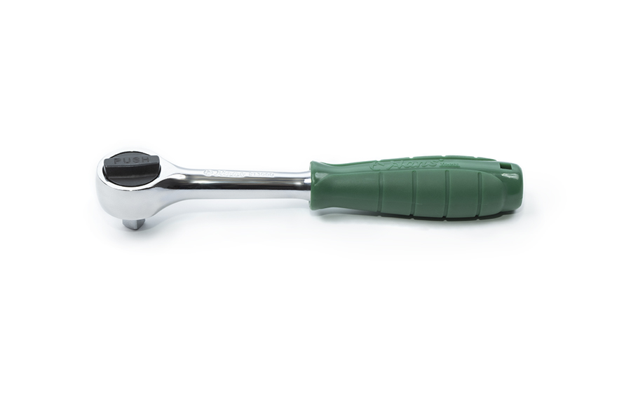 Трещотка с храповым механизмом и круглой головкой отличается простотой и удобством в применении. Трещоточный механизм ключа позволит работать им, не отрывая от закручиваемой детали. Резиновая накладка на ручке не позволяет инструменту скользить. Имеет кнопку быстрого сброса.